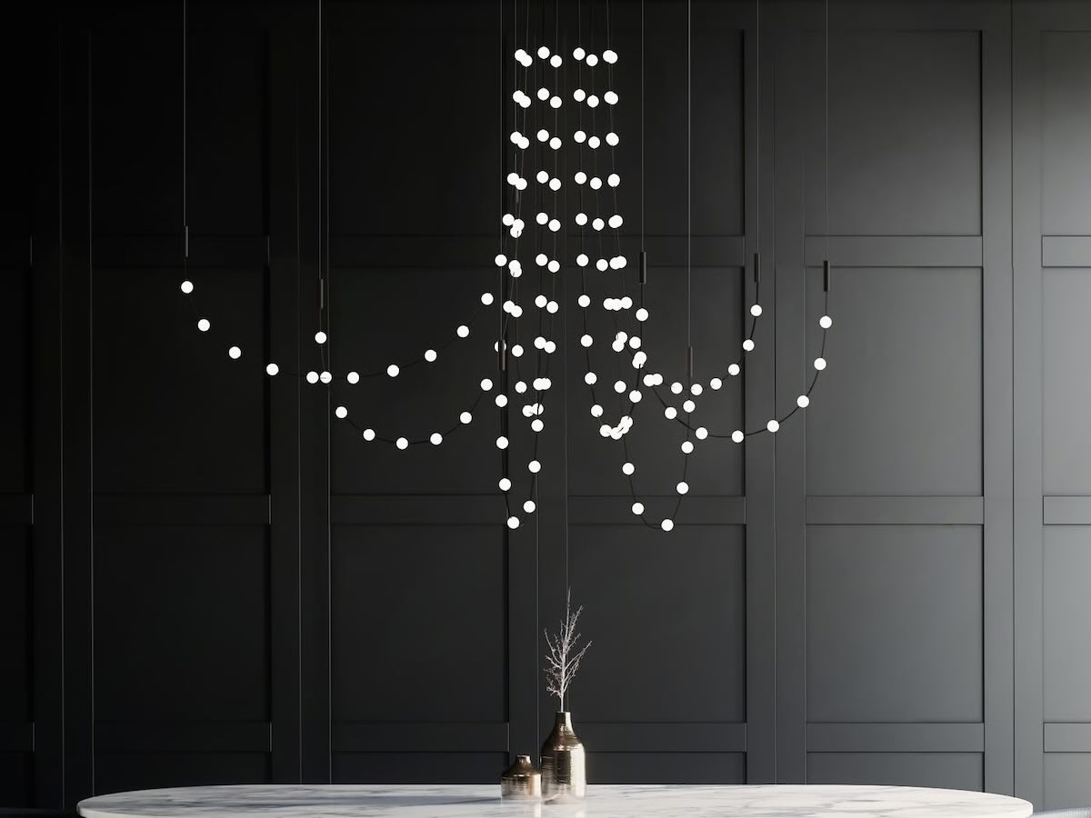 Multidot reimagines the classic chandelier into a modern lighting solution. Its low voltage electric cables and LED luminous spheres offer flexibility and endless compositional possibilities. This piece is not just a lighting fixture but a statement of modern design, adaptable to any space.