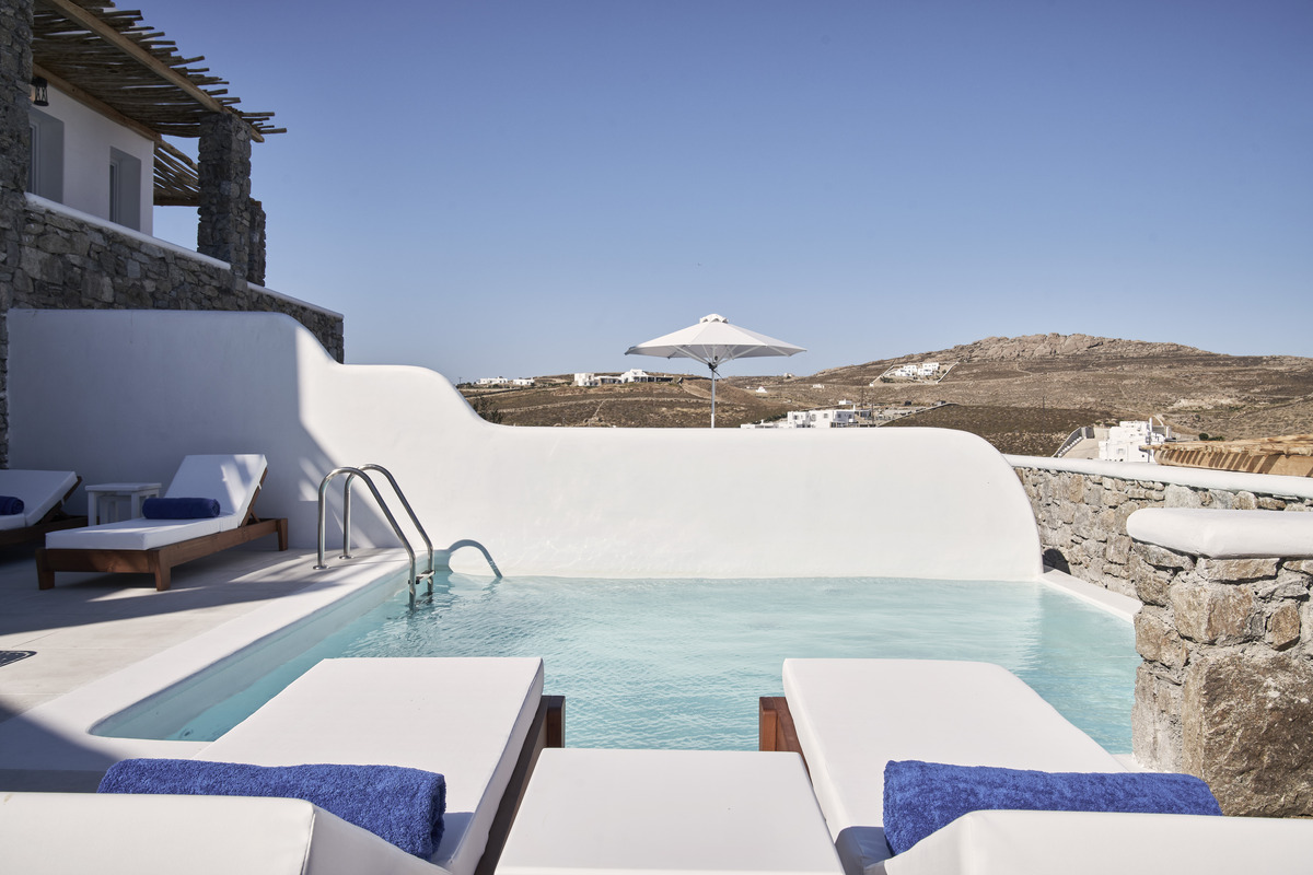 Regardless of the villa, the best part about this type of booking is the privacy it ensures. As a resort island, there’s no way around avoiding the buzz of Mykonos’ seasonal crowds. So having an exclusive space to retreat to where you can unwind at your leisure is a true luxury—that and the ensuing access. Villa guests receive priority access to all Katikies Mykonos’ restaurants, including the fine dining Botrini’s, an outpost of the Michelin-starred flagship in Athens.
