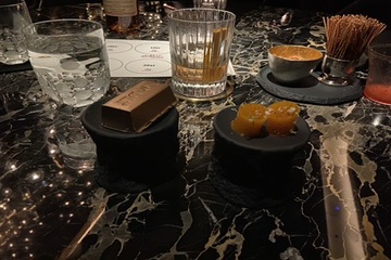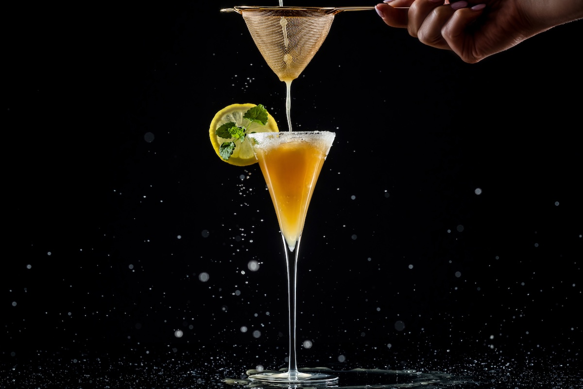 The Vault, once a nondescript office for casino hosts, has been transformed into an intimate alcove of luxury. With only 10 tables and a 50-person capacity, including a cozy 8-seat bar, it’s a world away from the bustling Vegas floor. The main parlor keeps the lights low and music at just the right volume without overwhelming the conversation. The décor screams opulence – gold doors, mohair walls, and an overhead light fixture, spanning nearly 9’ wide, showers a constellation of 80 glowing globes over bartenders dressed so suavely they could moonlight as GQ models. They pour and stir artfully, transforming a drink into an event, a performance, an odyssey.