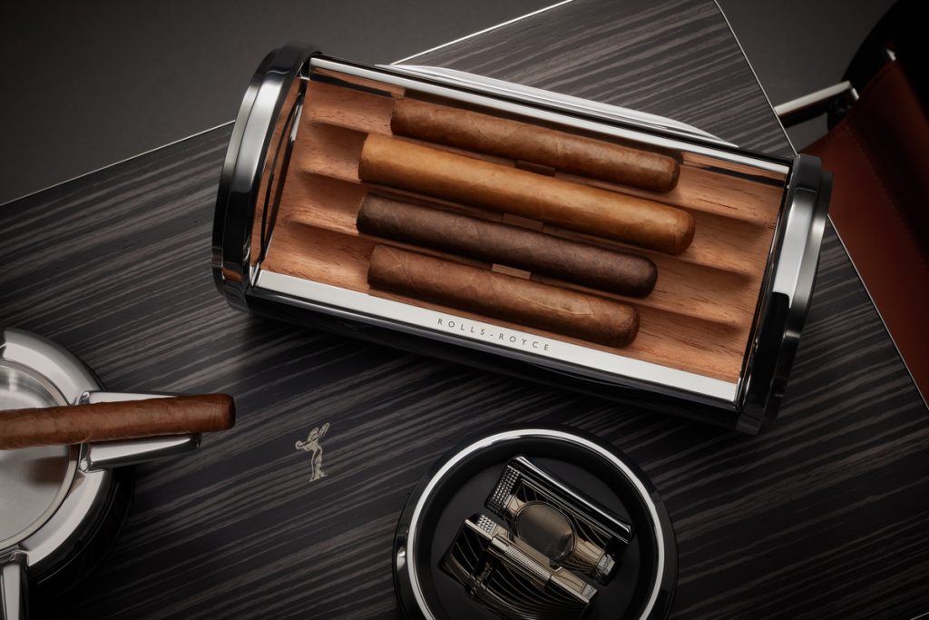 The Cellarette’s accompanying accessories are as intricately made as the main event, with a cigar cutter and lighter crafted by S.T. Dupont, Paris. Of course, the British automaker turns its hand to far more as well, like its Kinetic Luggage Collection—based on the techniques of a top London Head Butler—and its Escapism Luggage Collection, designed for the “wandering spirit” with bespoke leather and canvas.