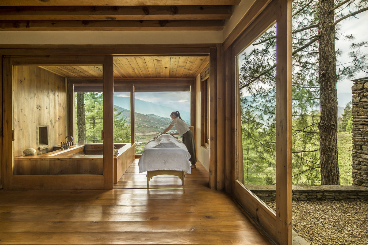 These rules aren’t about keeping tourists out. Bhutan—known for its philosophy of Gross National Happiness—warmly welcomes responsible guests who invest time, thought, and yes, money, into their trips. Guided by a “high value, low volume,” policy, Bhutan carefully protects its culture, infrastructure and pristine natural resources, while ensuring that travelers enjoy an exceptional—and authentic—experience. Because of this, Bhutan has emerged as a luxe hotspot full of ancient, meditative temples, rich arts and crafts, some of the world’s best hiking, diverse wildlife and once-in-a-lifetime opportunities to receive blessings from lamas and monks. And then there are the hotels.