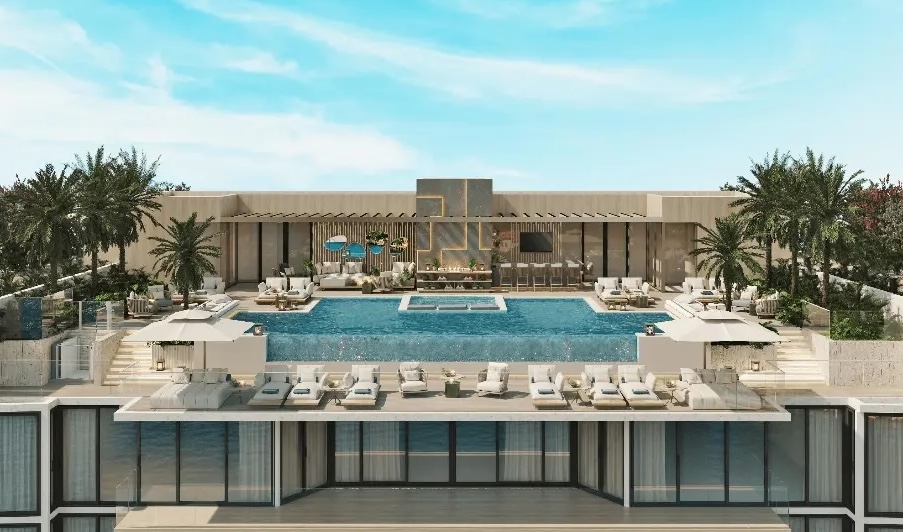 Amenities at Shoma Bay aim to provide an exceptional living experience with a resident lounge and bar, spa, Hammam, golf simulators, fitness center with TRUE Palladium equipment, a pet spa, kids club, and a 6,030-square-foot pool deck offering panoramic water views. Additionally, a 2,600-square-foot co-working business lounge, electric vehicle charging stations, and a library are included to cater to the diverse needs of its residents.