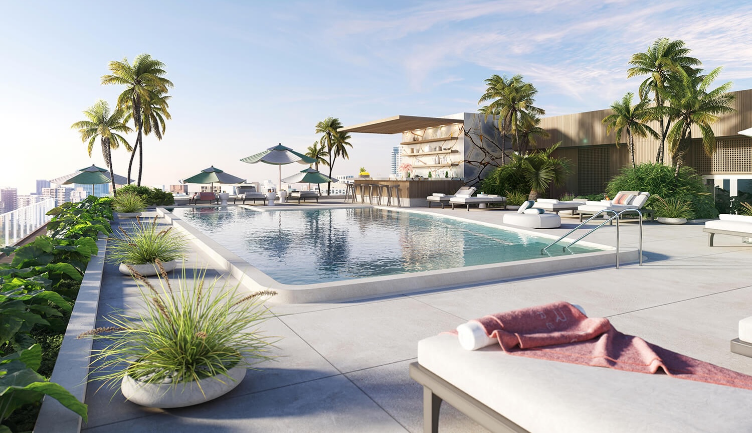 Amenities at La Maré are designed to cater to a luxurious lifestyle, including a bayfront outdoor space with boat slips and lounge areas, a landscaped resort-like rooftop pool deck with a pool, jacuzzi, lounge chairs, daybeds, outdoor kitchen, and bar/lounge. Additionally, the property includes a state-of-the-art fitness center, a spa with steam and sauna, and a rooftop bar with a summer kitchen. The collaborative efforts of renowned designers and architects have ensured that La Maré harmonizes with nature while maximizing the beautiful bayfront and city views.