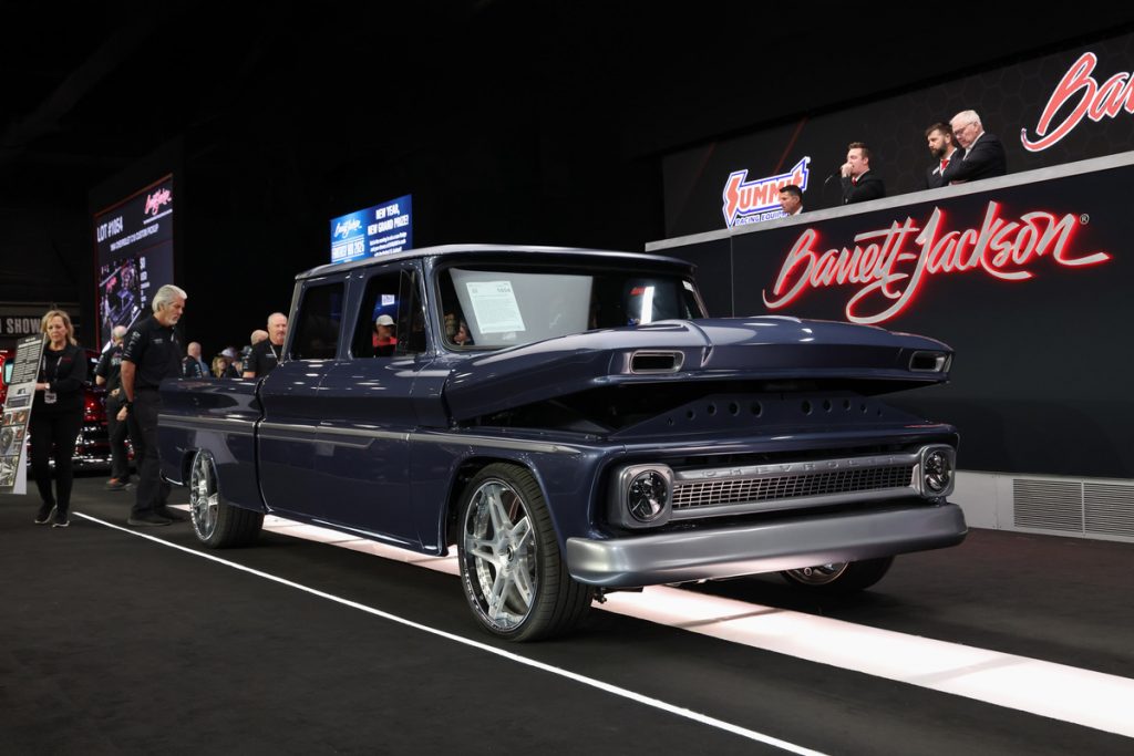 Lot #1054: 1964 Chevrolet C10 Custom Pickup – Sold for $275,000. A show-stopping pickup blending vintage appeal with contemporary craftsmanship.