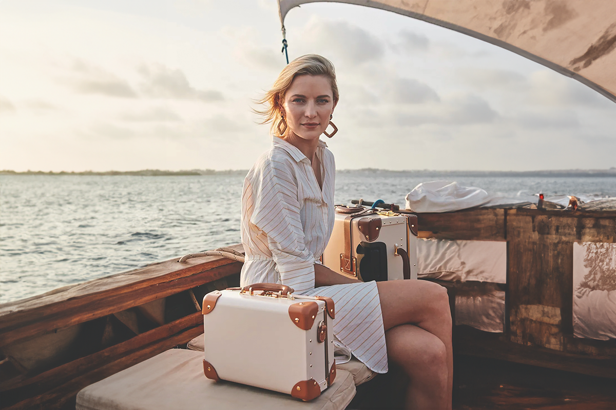 Sara Banks, creator of SteamLine Luggage, with her luxurious luggage.