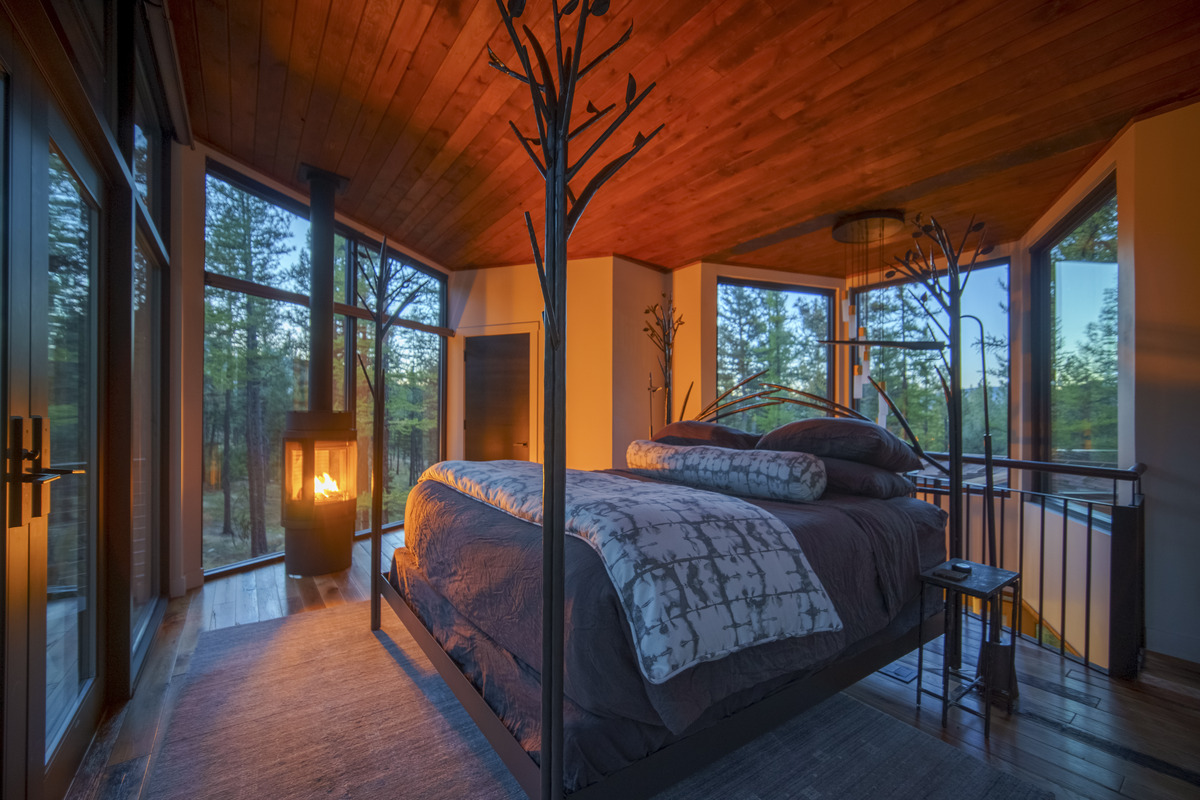 Each style of Haus boasts some common themes, with sleek, contemporary lines, reclaimed wood finishes, homey fireplaces (both indoors and out), and private hot tubs. All are designed to bring the outdoors in and blend seamlessly into their forested surrounds with their embrace of dark, rich colorways and natural materials.