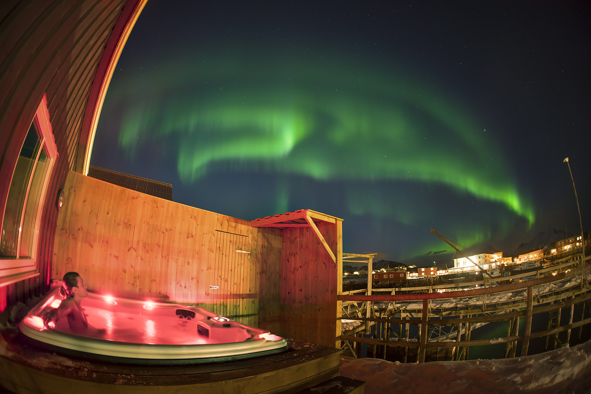 Nothing showcases the country’s majestic beauty more than the Northern Lights, also referred to as the Aurora Borealis, a mesmerizing natural phenomenon where vibrant colors of green, purple, pink, and sometimes red dance across the night sky. These shimmering lights occur when solar particles collide with the Earth’s atmosphere, creating dazzling waves of light that ripple and swirl above. They are best seen during the dark winter months on clear, crisp nights. That is why you will want to head north to Lofoten, above the Arctic Circle where they are most visible. Upon arrival in Lofoten, check in at Hattvika Hillside, part of Hattvika Lodge. It is a picturesque accommodation nestled amidst dramatic landscapes and scenic views. This charming property features a blend of traditional and modern architecture, offering cozy cabins and lodges that provide a comfortable and inviting atmosphere. Guests wrap themselves in pure luxury while enjoying breathtaking views of the surrounding mountains, fjords and the ocean, making it an ideal spot for relaxation. The location also serves as a perfect base for exploring the natural beauty of Lofoten, with opportunities for hiking and fishing.
