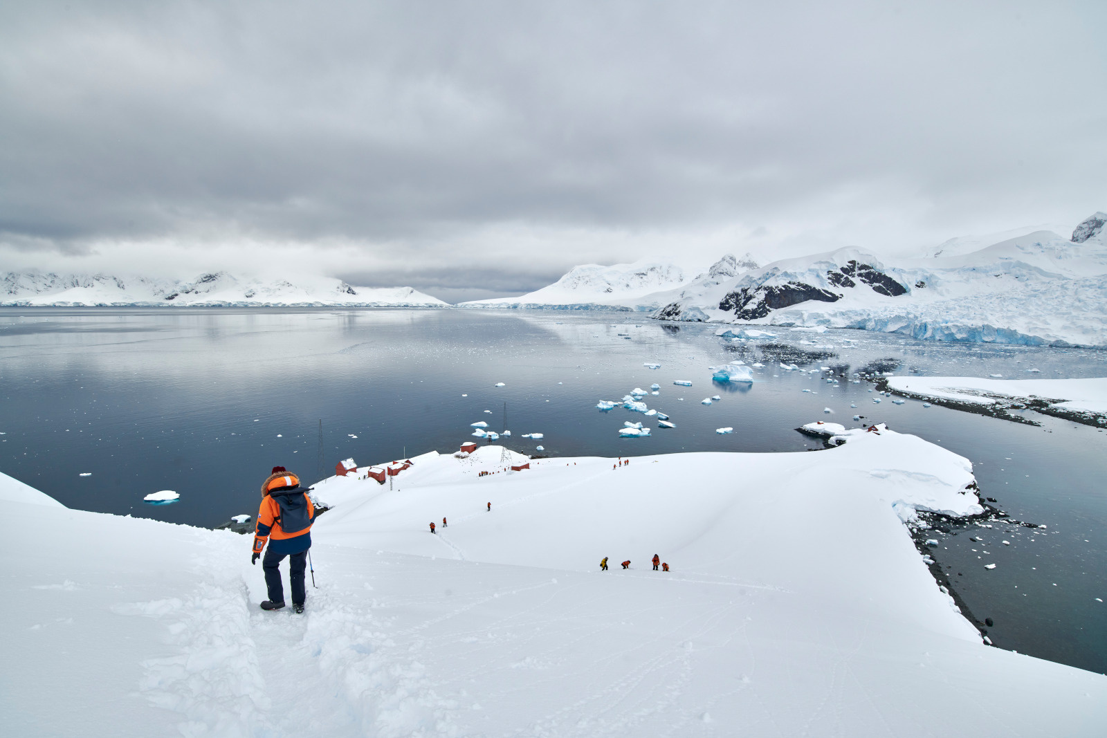 Snowshoeing or hiking. Exploring on land or pack ice, you see the textured contours of Antarctica up close. Pearly-white snow blankets the shore, though some dark rock may peek through. During your walk, you take it all in, watching the snow glitter like diamonds in the low sunshine, crunching under the weight of your snowshoes. Imposing massifs reach to the heavens, draped in ice. And you scan all around for sightings of emperor penguins and Weddell seals.